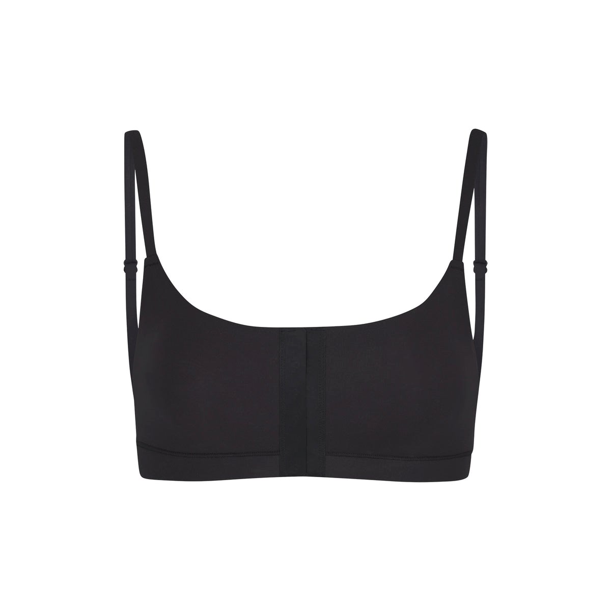 The signature buttery soft and stretchy SKIMS scoop neck bralette, with hook and eye front closure for added accessibility of dressing. Discrete bonding at closure lays flat against body for an invisible look and feel under clothing.